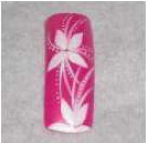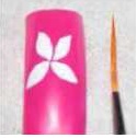 Para pintar un petalo comienza con el punto del pincel y en angulo mientras se crea la parte gruesa del petalo y se continua cerrando hasta llegar a la punta, luego repite para otro lado del petalo hasta completar a flor. (Usted podra rellenar el centro de la flor con otro color).